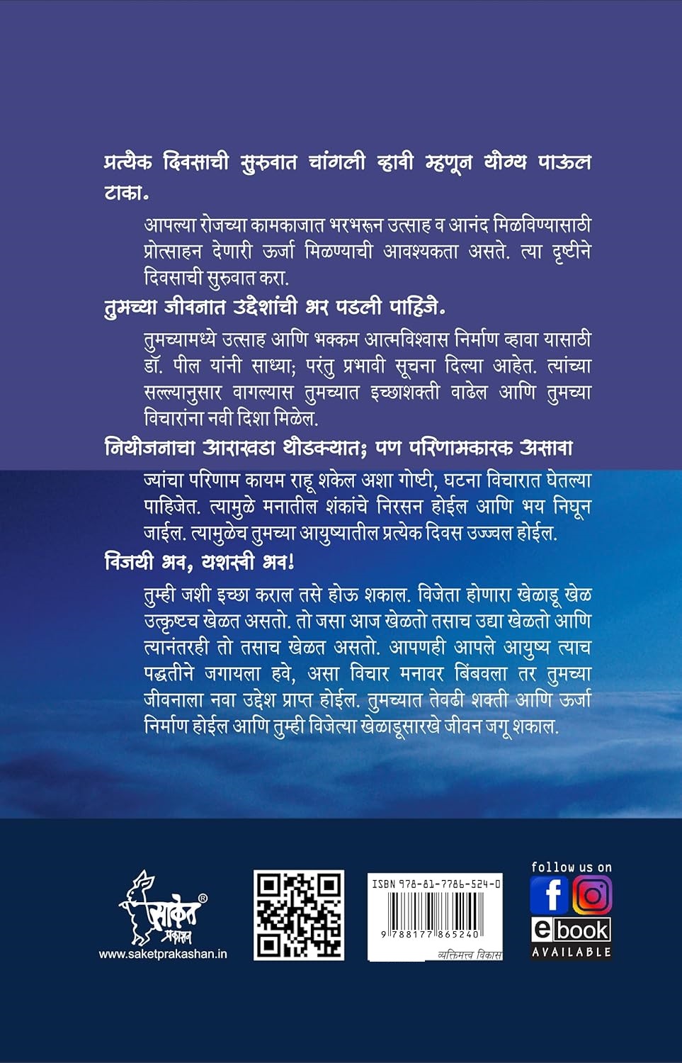 तुमच्यामध्ये उत्साह आणि भक्कम आत्मविश्वास निर्माण व्हावा यासाठी डॉ. पील यांनी साध्या; परंतु प्रभावी सूचना दिल्या आहेत. त्यांच्या सल्ल्यानुसार वागल्यास तुमच्यात इच्छाशक्ती वाढेल आणि तुमच्या विचारांना नवी दिशा मिळेल.